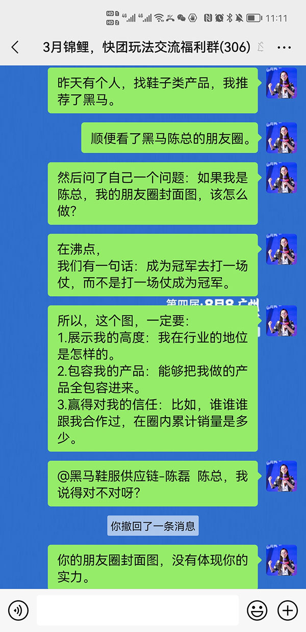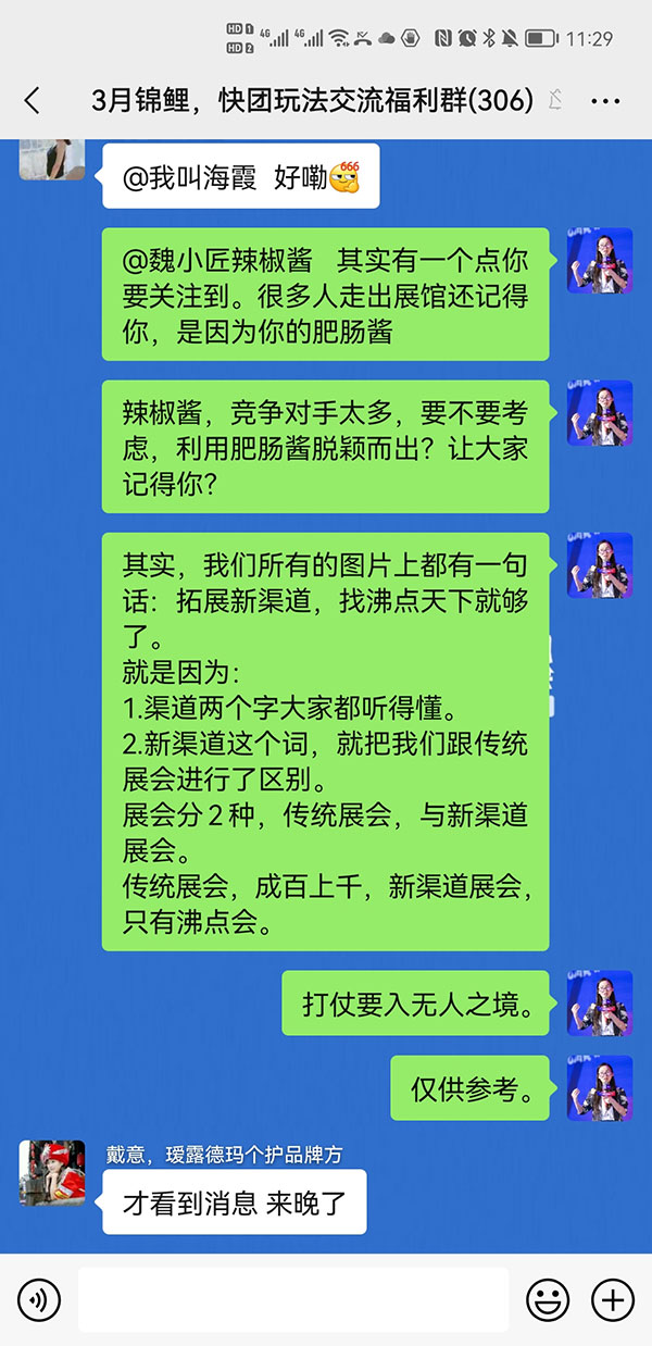 勇哥說:3月錦鯉,主要是帶大家多了解行業(yè),建立客戶思維,結(jié)交一些圈內(nèi)朋友,大家可以共同探討在團(tuán)長賽道遇到的營銷問題。