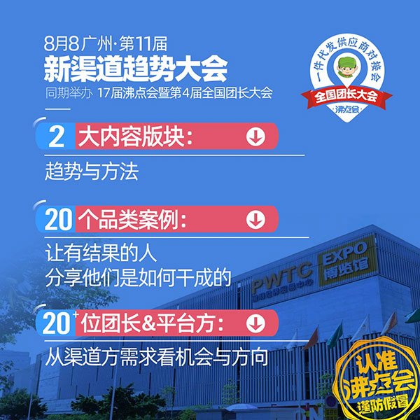 據(jù)第4屆全國團長大會舉辦方沸點會展最新消息,第4屆全國團長大會期間的第11屆新渠道大會,主要內(nèi)容分為趨勢與方法兩大版塊。