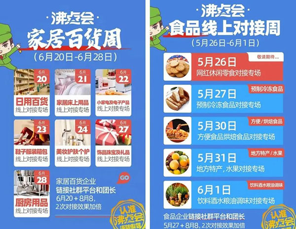 兒童產品線下對接會,食品線上對接周,以及日用百貨對接周等三場線上對接活動,沸點天下創(chuàng)新了主題對接的活動,并且以會前培訓,會中轉發(fā),會后成刊,再以渠道日,反饋日等進行二輪三輪鏈接機會。