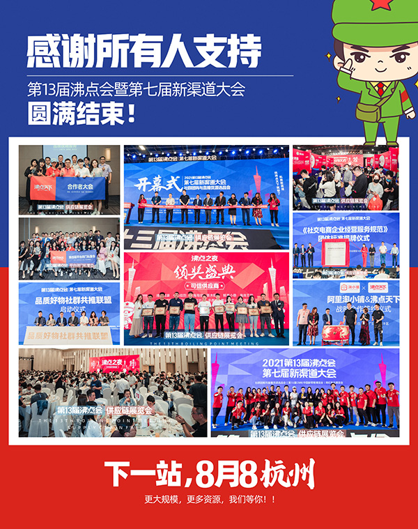 第14屆沸點會將于8月8-9日在杭州舉辦!還是由沸點會展主辦,萬團會和4458貨源網(wǎng)協(xié)辦。歡迎更多的團購平臺、直播機構(gòu)、供應(yīng)鏈、品牌方、工廠方、云倉等積極報名參加!